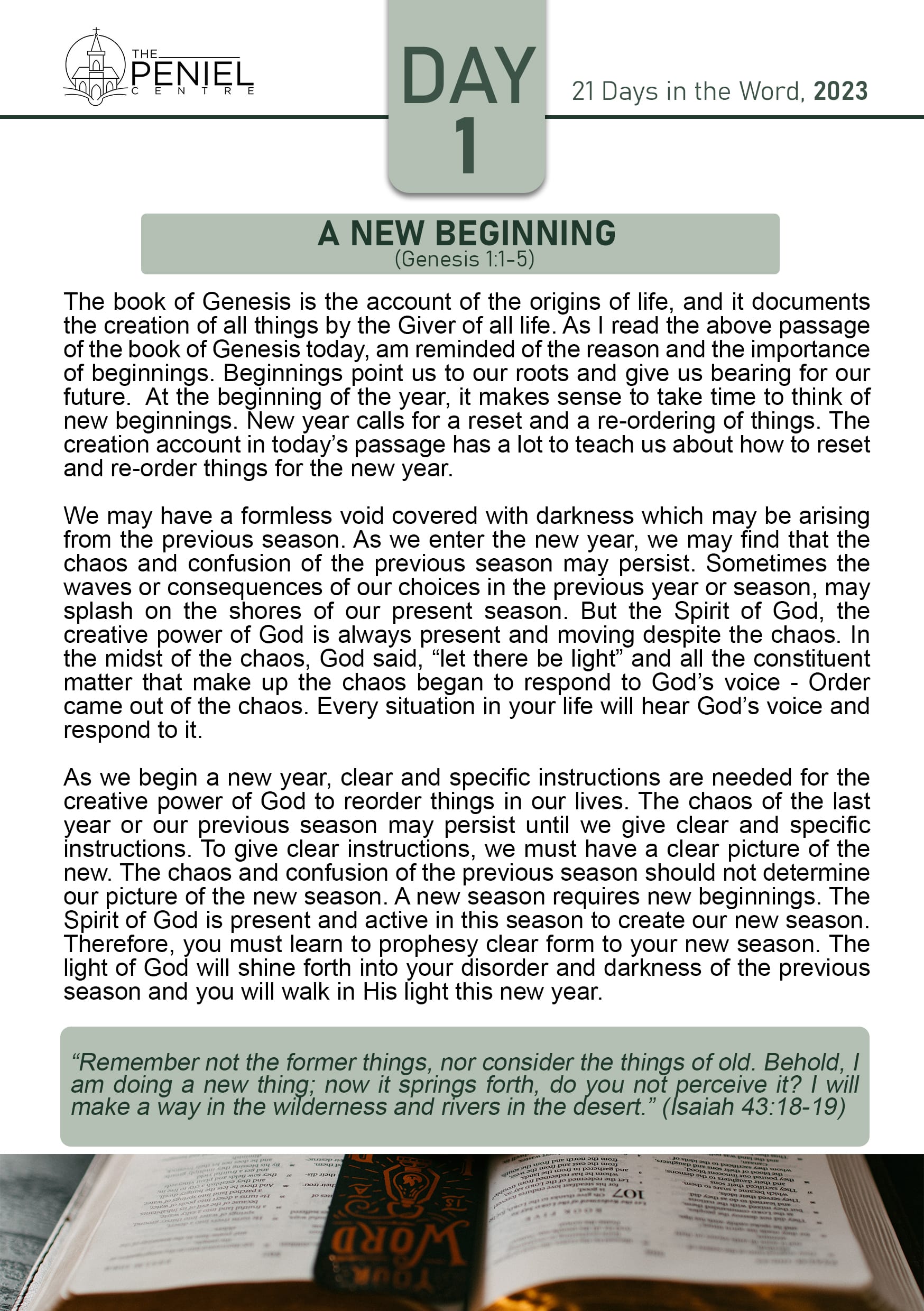 The chaos and confusion of the previous season should not determine our picture of the new season. A new season requires a new beginning. The Spirit of God is present and active in this season to create our new season.