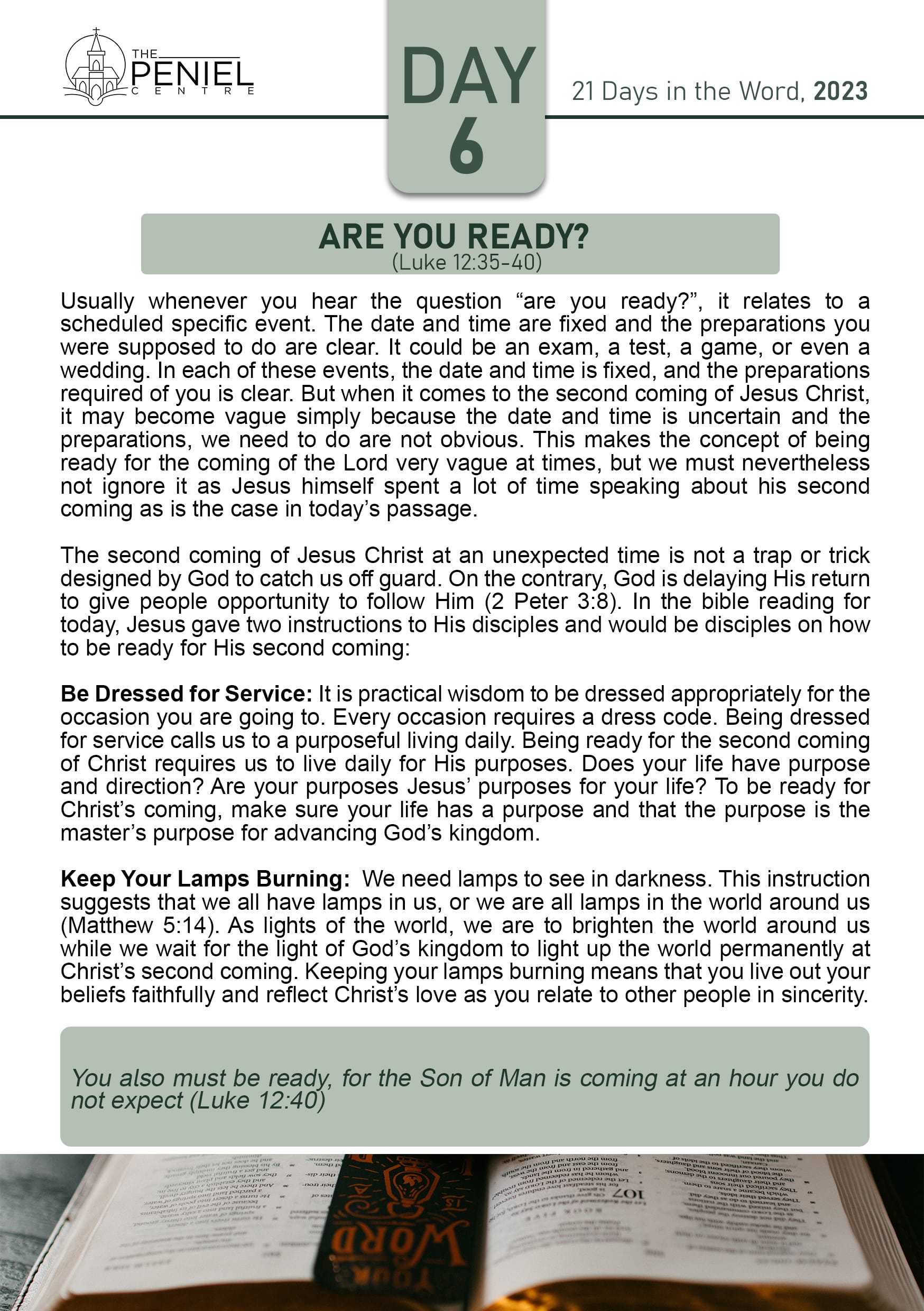 Thank you Jesus for your word. I can be ready because of your word and the help of the Holy Spirit. Amen