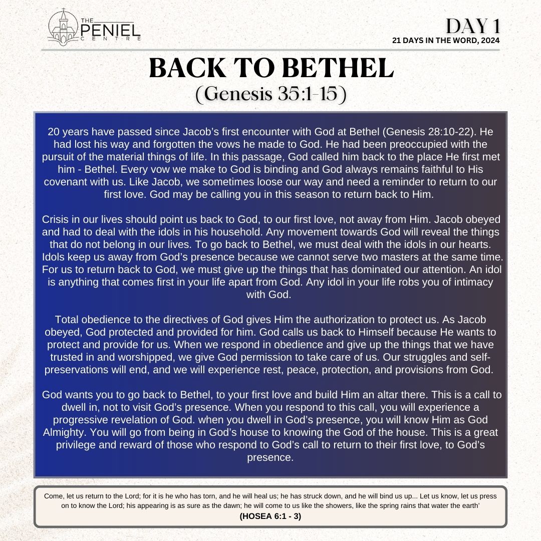 20 years have passed since Jacob’s first encounter with God at Bethel (Genesis 28:10-22). He had lost his way and forgotten the vows he made to God. He had been preoccupied with the pursuit of the material things of life. In this passage, God called him back to the place He first met him- Bethel.