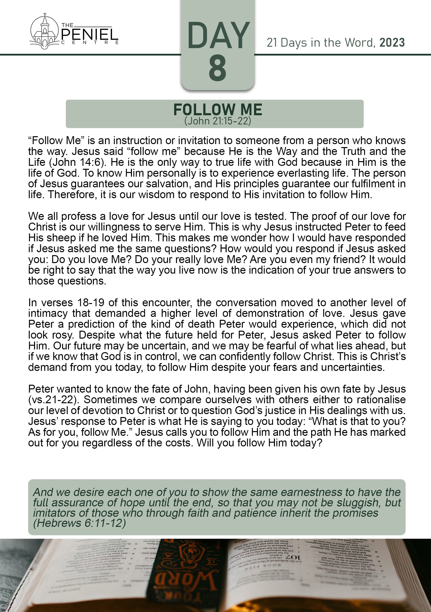 To know Him personally is to experience everlasting life. The person of Jesus guarantees our salvation, and His principles guarantee our fulfilment in life. Therefore, it is our wisdom to respond to His invitation to follow Him.