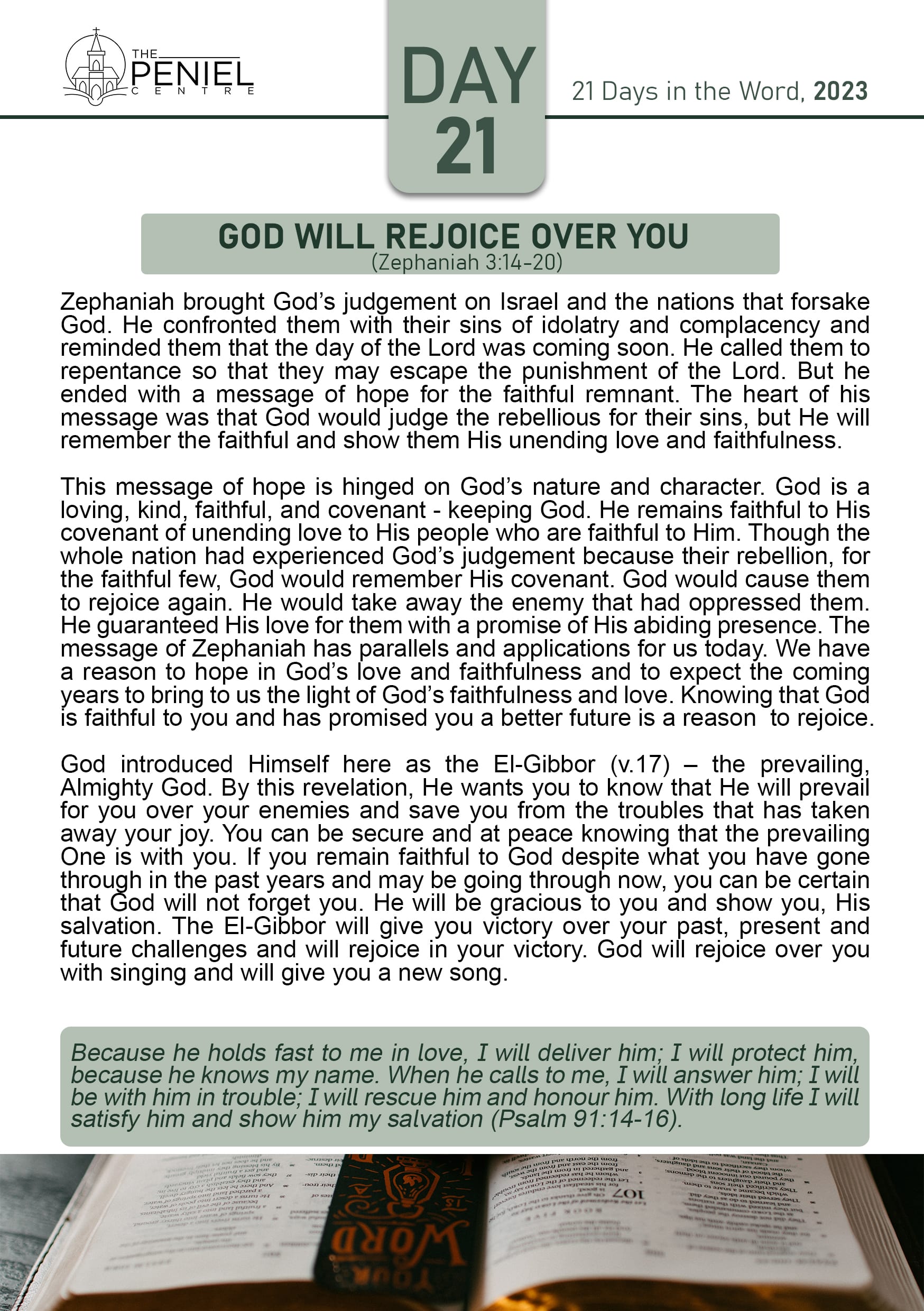 The message of Zephaniah has parallels and applications for us today. We have a reason to hope in God’s love and faithfulness and to expect the coming years to bring to us the light of God’s faithfulness and love. Knowing that God is faithful to you and has promised you a better future is a reason to rejoice.