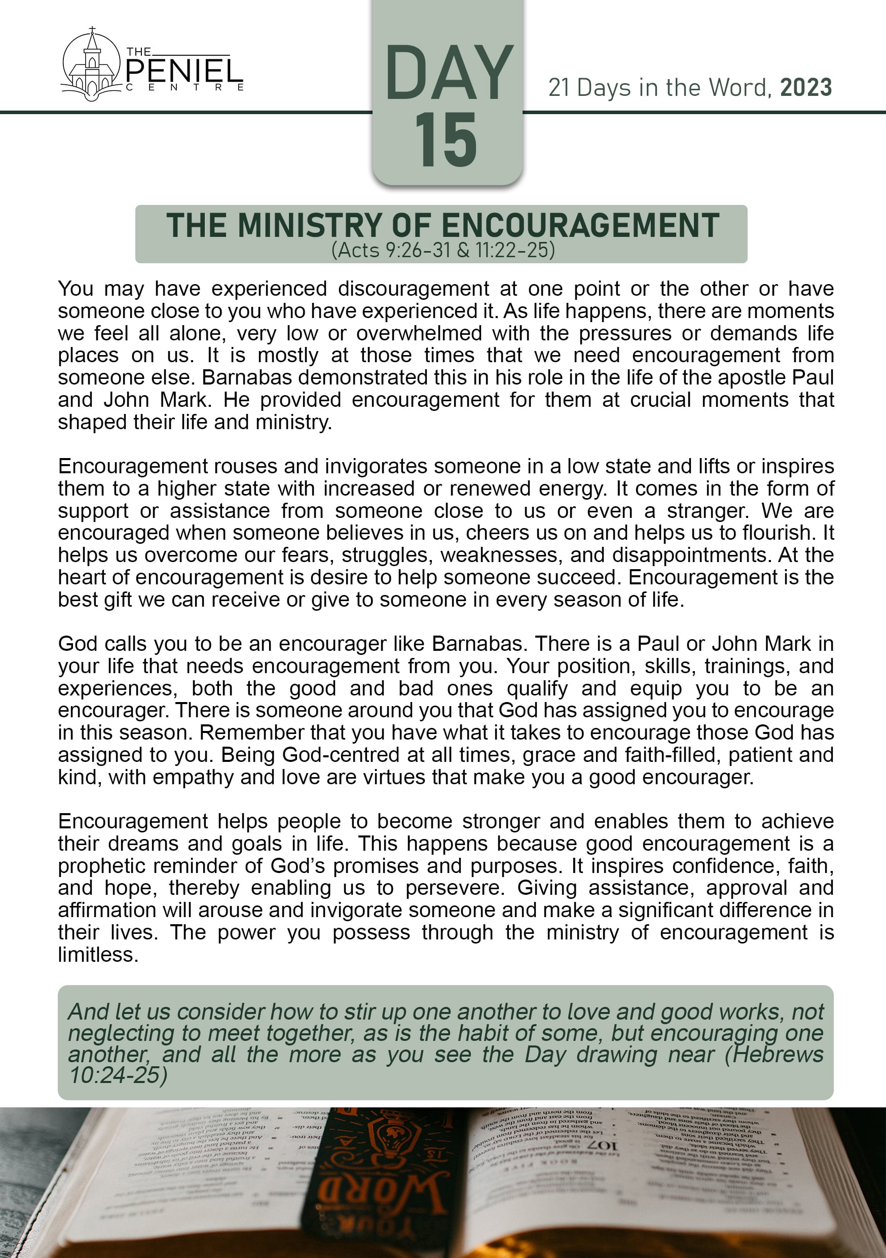 Remember that you have what it takes to encourage those God has assigned to you. Being God-centred at all times, grace and faith-filled, patient and kind, with empathy and love are virtues that make you a good encourager.