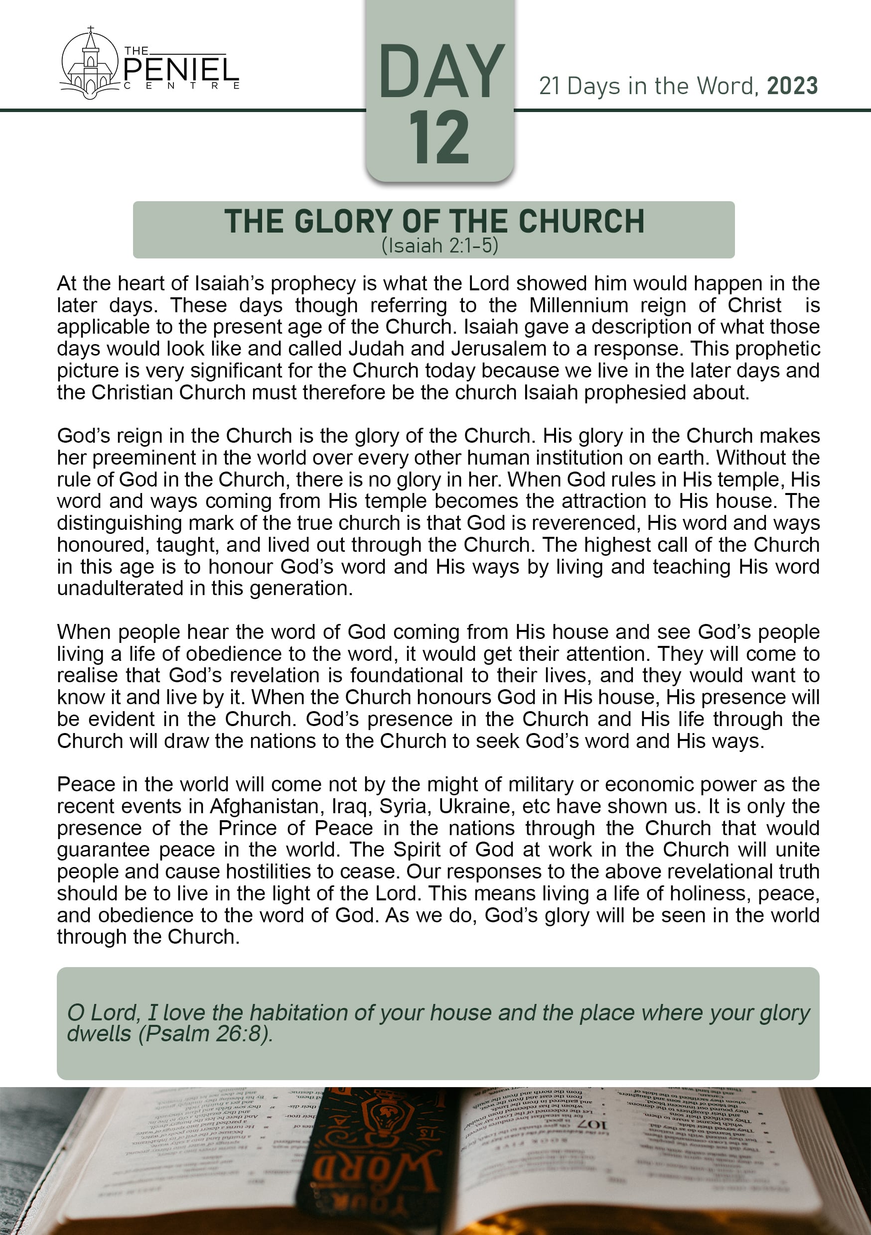 This means living a life of holiness, peace, and obedience to the word of God. As we do, God’s glory will be seen in the world through the Church.